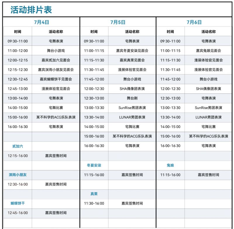 二、舞台&签售排片表