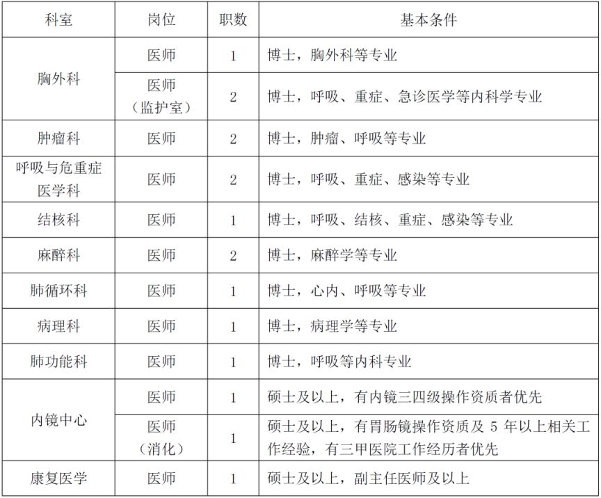上海市肺科医院创建于1933年,是一家集医疗、教学、科研功能为一体的现代化三级甲等专科教学医院。医院为每一位有梦想的员工提供广阔的发展平台。根据医院建设发展需要,现于院内外公开招聘以下岗位人员: