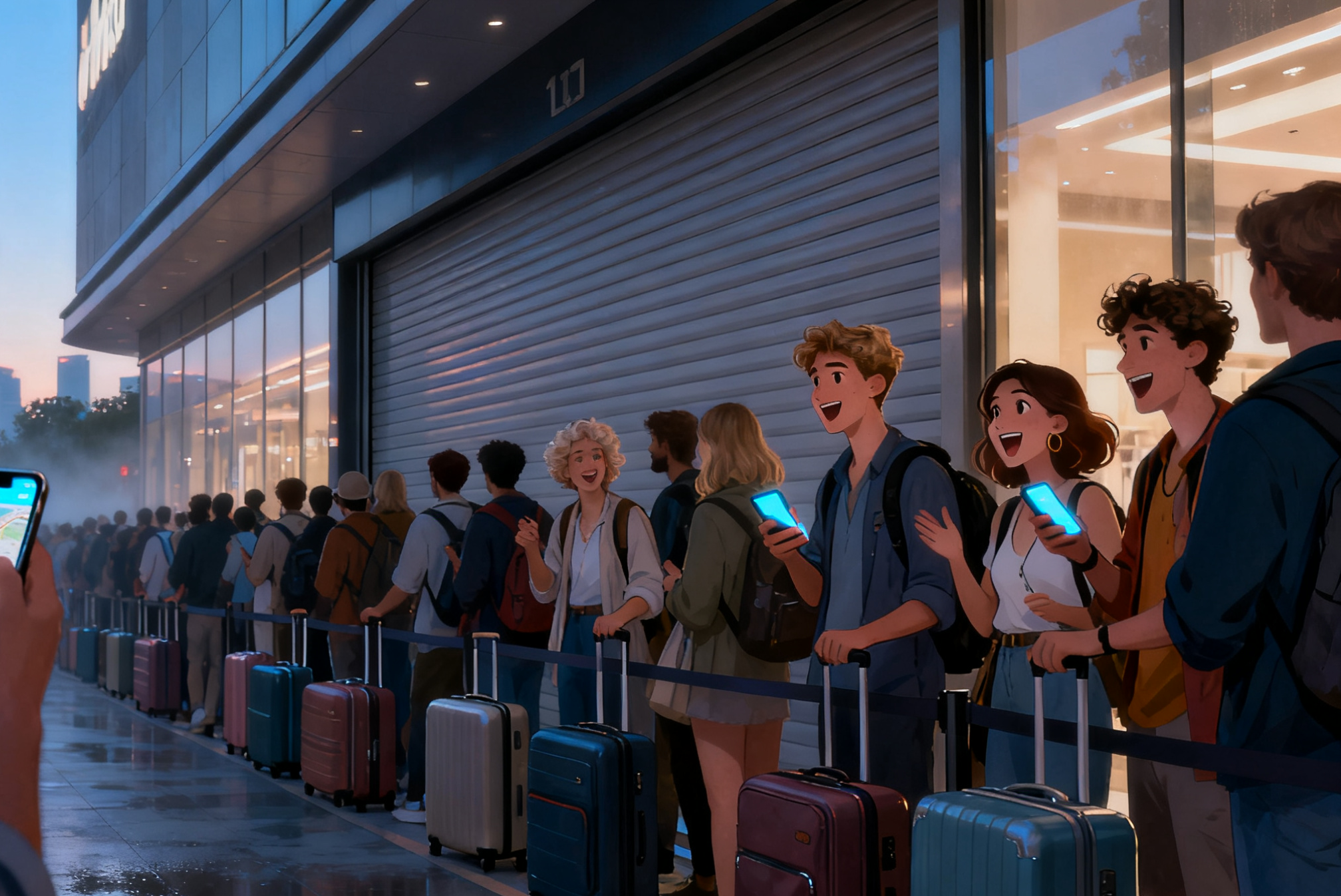 “终于能来上海花钱了!”清晨6点,上海某商场门口已排起长队,队伍里大半是拖着行李箱的外国游客,有人举着手机查攻略,有人兴奋地和同伴讨论“必买清单”,就等商场开门“放肆剁手”。